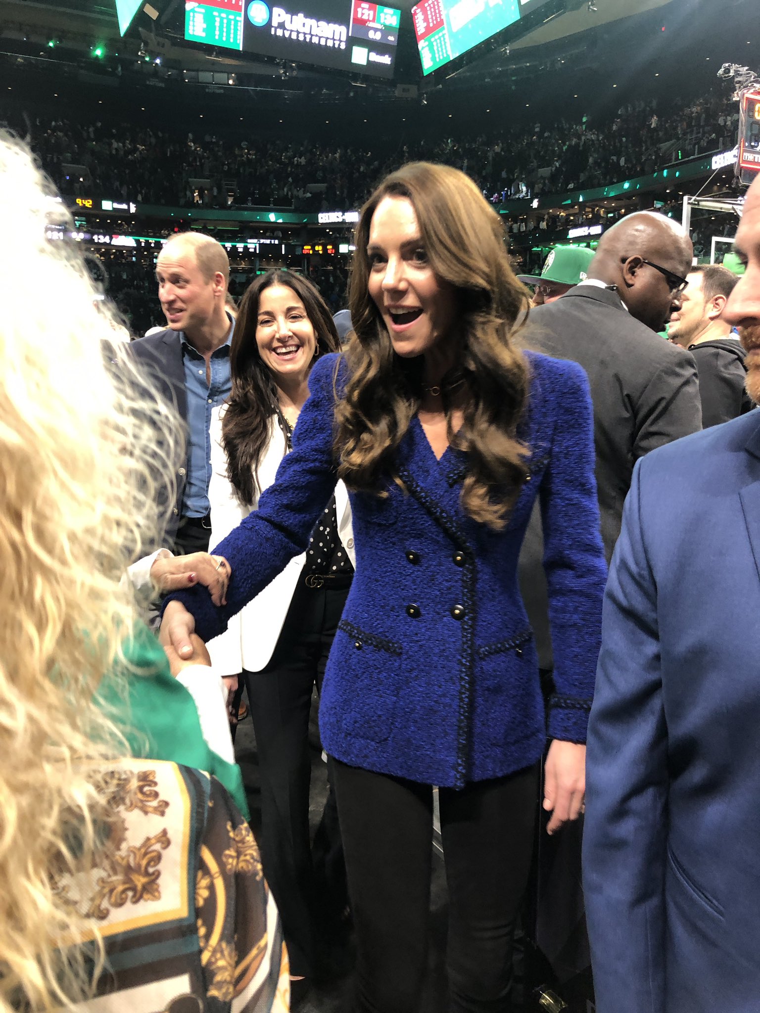윌리엄 왕자의 짧은 연설로 어스샷 시상식 시작을 알린 웨일스 부부는 8년 만에 미국 농구장으로 떠나 보스턴 셀틱스 vs. 마이애미 히트와의 농구 경기를 관람했어요.🏀