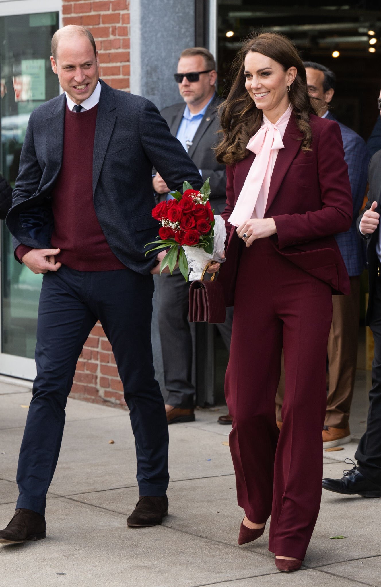 윌리엄 왕자는 버건디 니트를, 케이트 미들턴은 버건디 슈트를! 버건디 슈트와 연분홍 보우 블라우스를 매치한 오늘의 웨일스 공비. 환경·기후 보호하려는 시상식을 기념하러 전용기가 아닌 일반 상업용 비행기를 타고 오는 눈치❓수고를 보이면서 미국으로 온 만큼 케이트 미들턴의 재탕 패션이 예상됐어요.