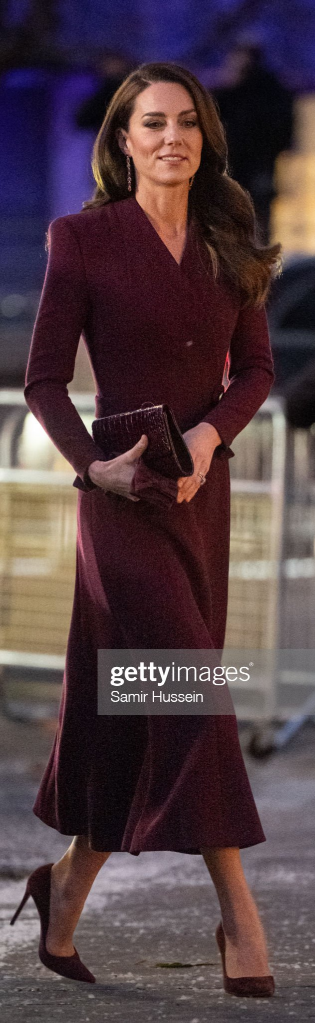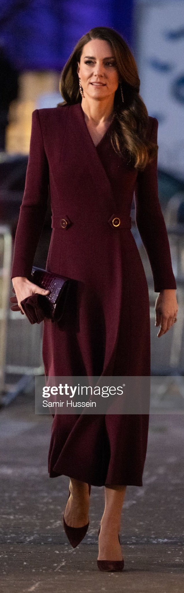 추운 겨울날의 웨일스 공비는 참석했던 2021 COP26 리셉션에서 처음으로 착용했던 에포닌 코트 원피스를 버건디로 커스튬해 캐롤 콘서트에서 다시 선보였네요.