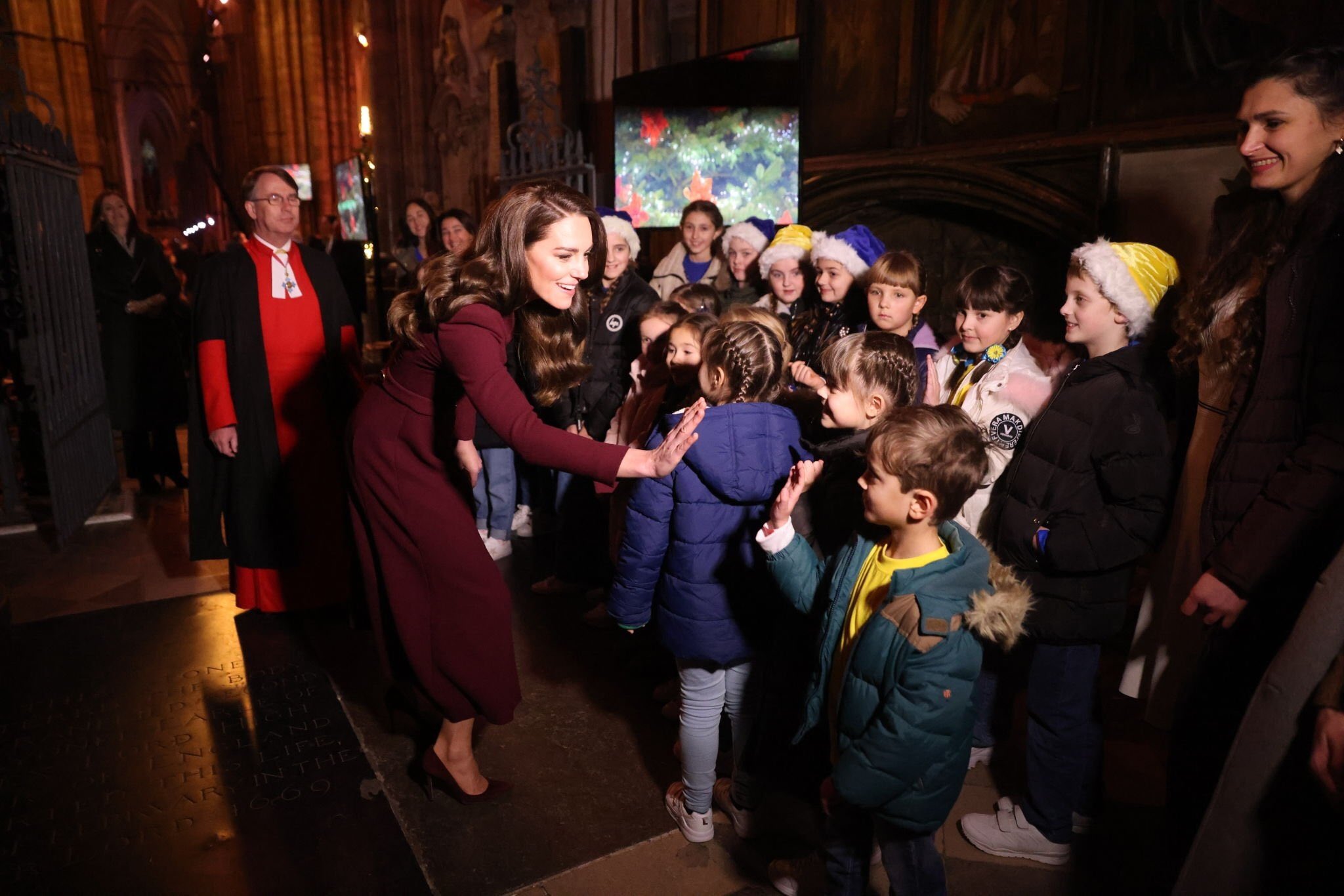 HRH The Princess of Wales greets HRH The Prince of Wales, Prince George and Princess Charlotte as they arrive at Westminster Abbey for tonight’s carol service. #RoyalCarols #TogetherAtChristmas pic.twitter.com/ZIbODw3ua5