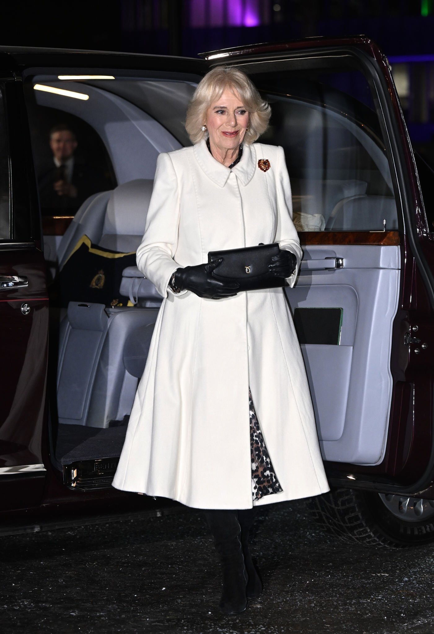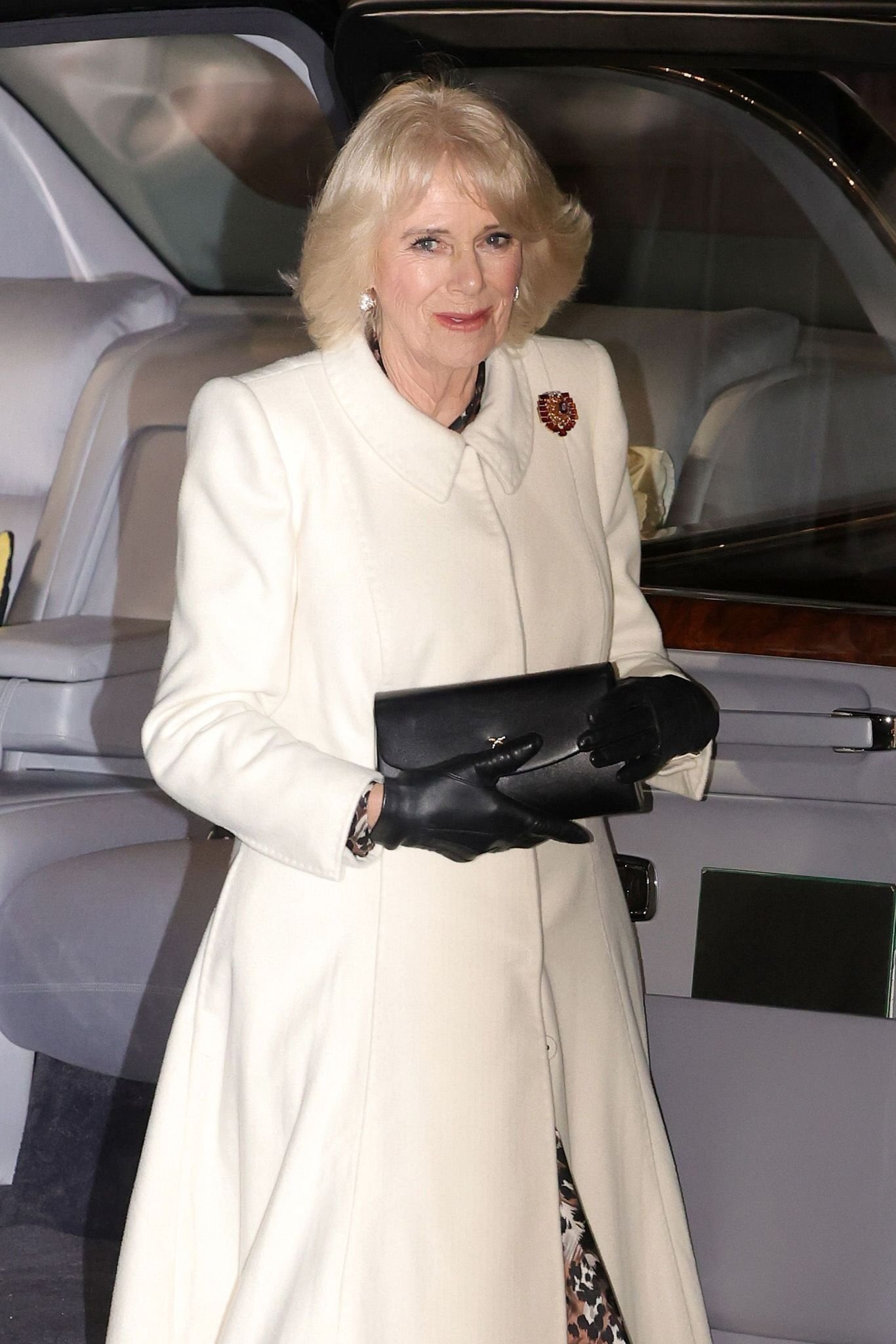 눈 오는 겨울처럼 순백색의 코트를 입고 온 카밀라 왕비는 안에 입은 호피 무늬 원피스와 맞춰 갈색의 토파즈 브로치를 달았어요💎 한때 퀸 마더, 엘리자베스 보우스라이언이 소유했던 토파즈 브로치는 1930년대 만들어진 까르띠에 작품이라고 추측되고 있는데요. 이젠 카밀라의 최애 브로치 중 하나!