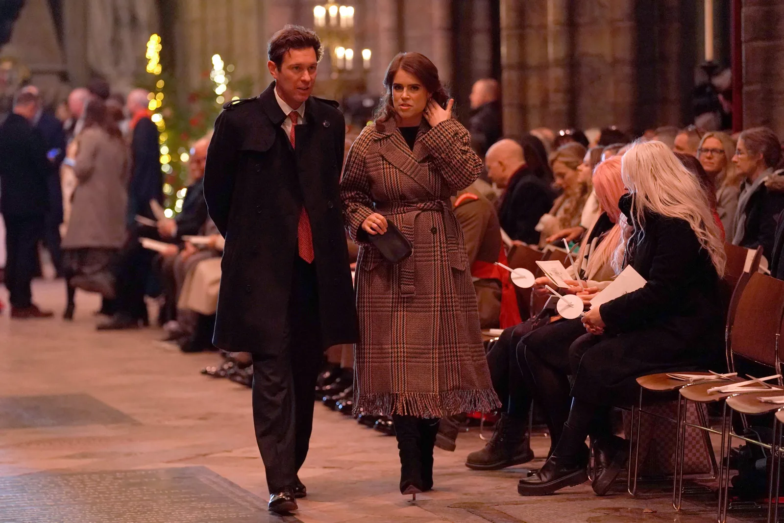 체크 코트로 맞춘 유제니 공주와 잭 브룩스뱅크 부부·베아트리스 공주와 에도아르도 마펠리 모치 부부