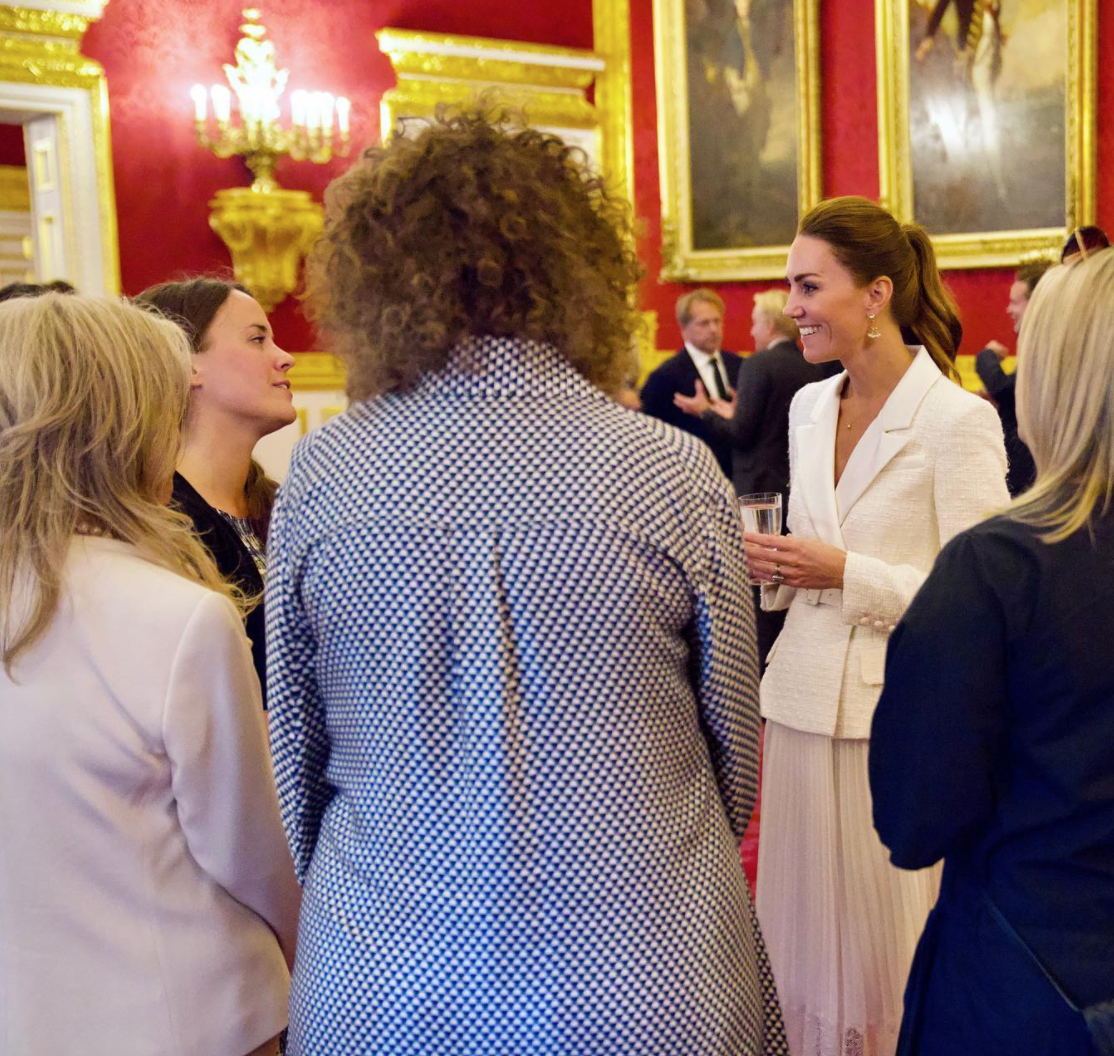 엘리자베스 2세 장례식 3개월 후 여왕의 진주 다이아몬드 초커와 바레인 진주 드롭 귀걸이를 다시 착용한 케이트 미들턴은 꽤나 좋아하는 패션 브랜드 셀프 포트레이트의 블레이저 원피스를 입었는데...과함 과다. 사실 이 원피스의 화이트 버전은 전에도 두 번 선보인 바 있고요.