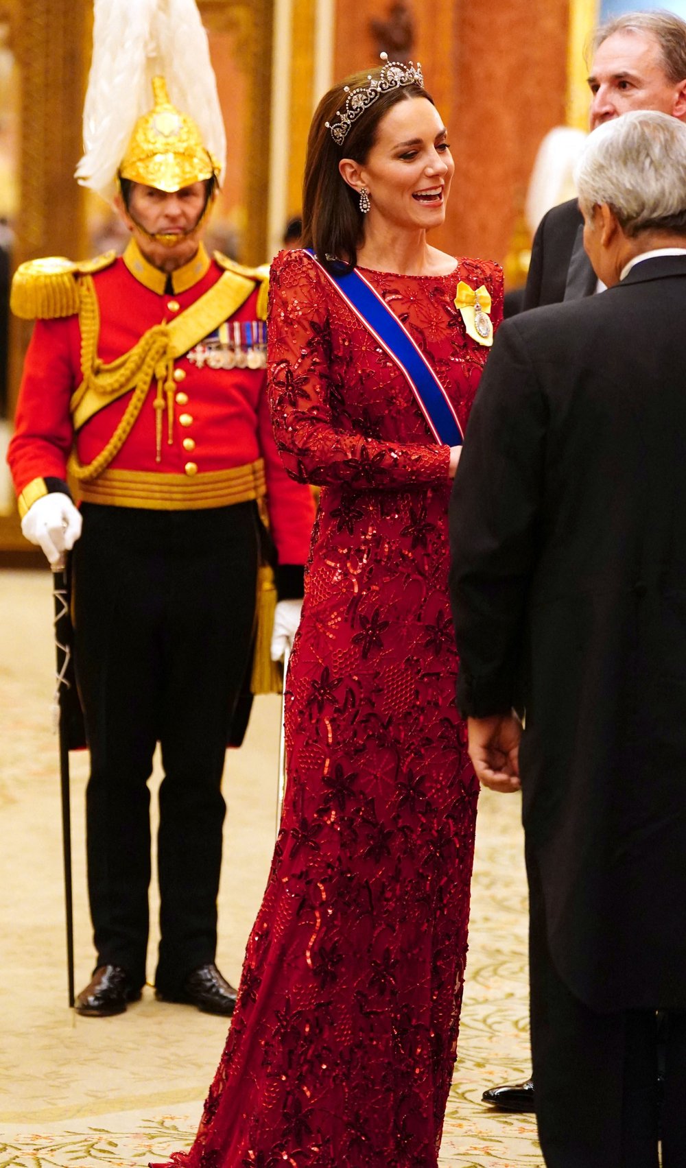지난 12월 6일, 버킹엄 궁에서 주최된 연례 외교 리셉션 참석한 윌리엄 왕자와 케이트 미들턴. 엘리자베스 2세의 다이아몬드 귀걸이와 함께 한 티아라 정보는 👇 pic.twitter.com/wwyySiBkO5