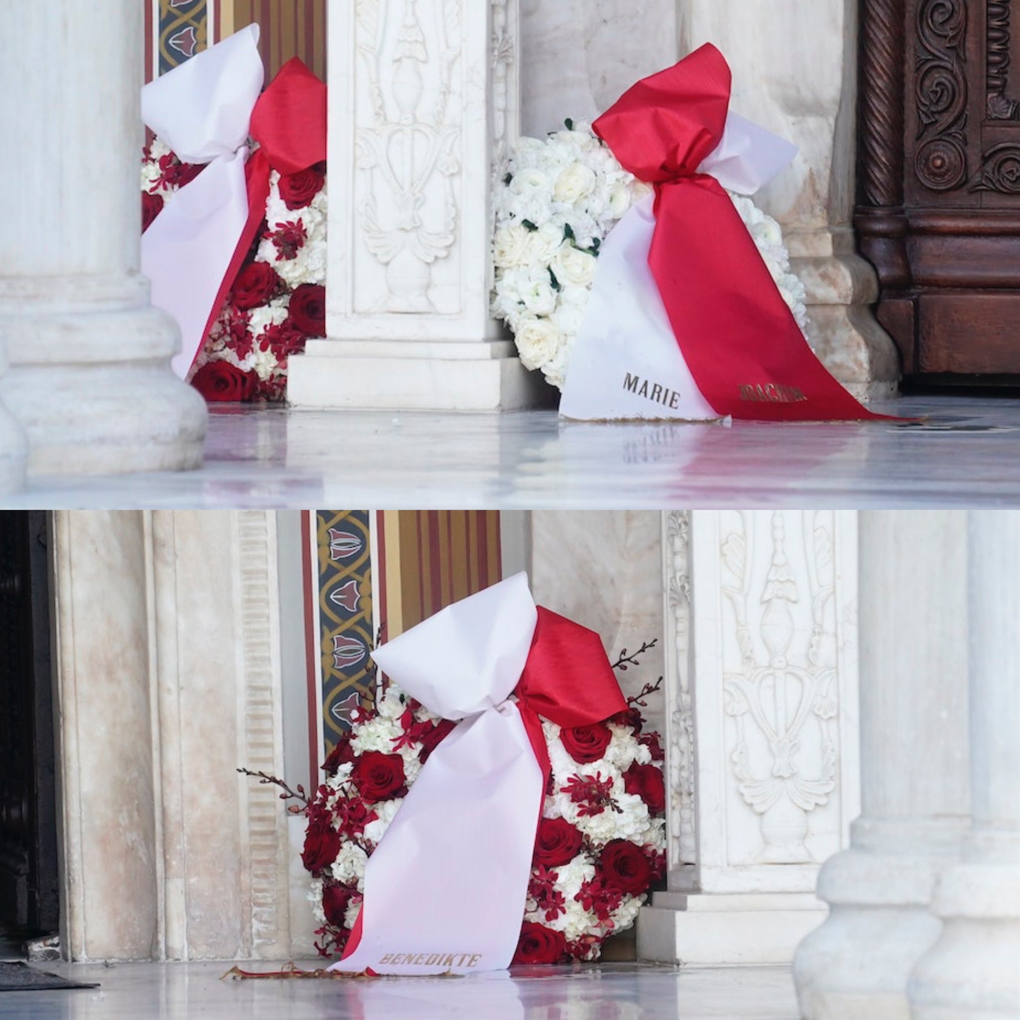 #NEW Hereditary Prince Ernst August, Hereditary Princess Ekaterina, Prince Christian and Princess Alessandra of Hanover arriving with the Princesโ mother Chantal at the Metropolitan Cathedral in Athens for the funeral of Former King Constantine ๐ฌ๐ท