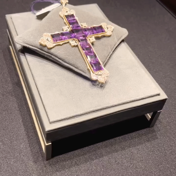 다이애나의 자수정 십자가 팬던트로 알려져 있지만 실제 소유자는 1980년대 가라드로부터 자수정 십자가 펜던트를 구매한 팔레스타인계 영국인 Naim Attallah입니다.