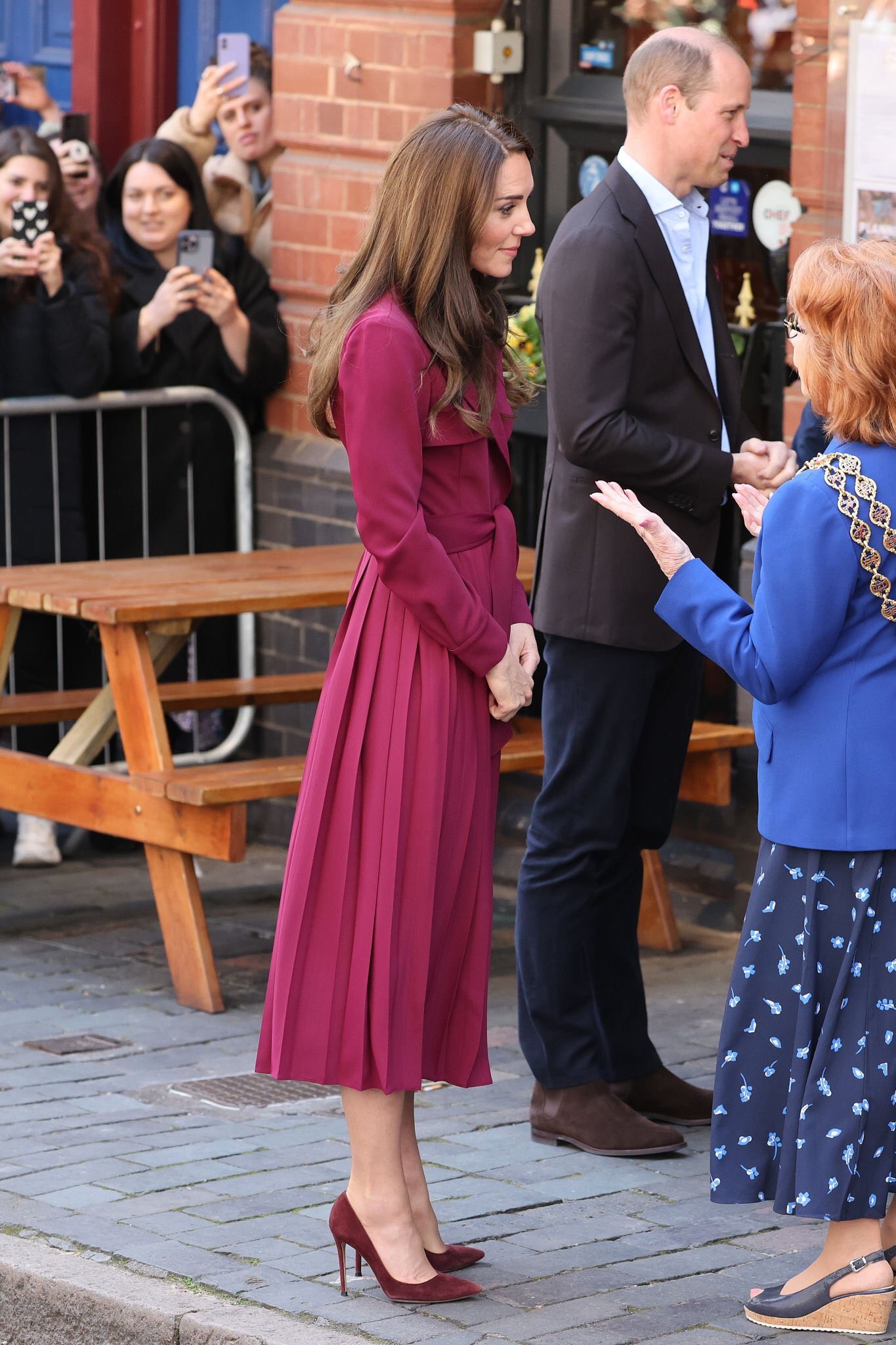 버건디 색상을 선택한 오늘의 웨일스 공비! 윌리엄 왕자와 함께 영국 버킹엄을 방문한 케이트 미들턴은 리즈 트러스가 총리이던 시절 영국 왕실 내에서 처음으로 입었던 카렌 밀렌 Karen Millen의 새로운 원피스를 입었어요:)