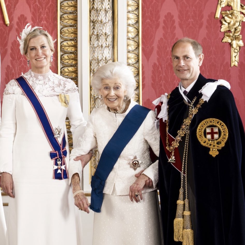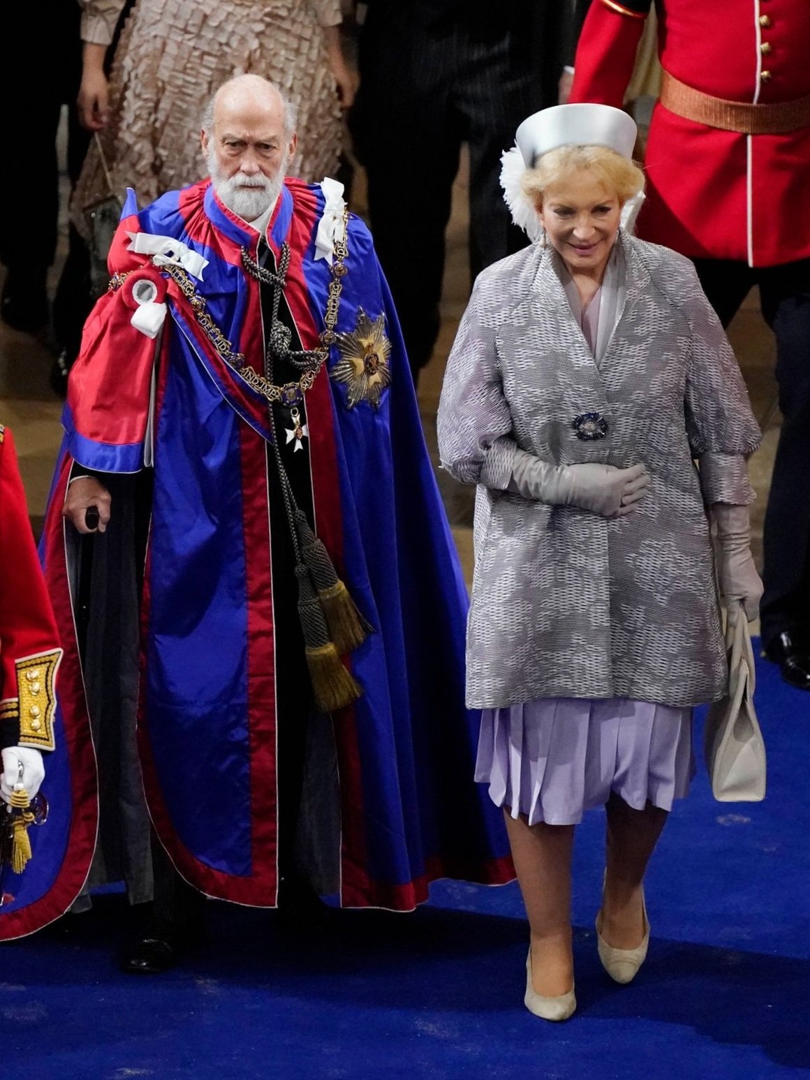 찰스 3세 대관식 공식 초상화에 자리를 차지하지 못한 남동생 켄트의 마이클과 달리 자리를 차지한 고령인 여동생, 알렉산드라 공주는 에든버러 공작 부부의 부축을 받으며 어정쩡하게 서있는 모습입니다.