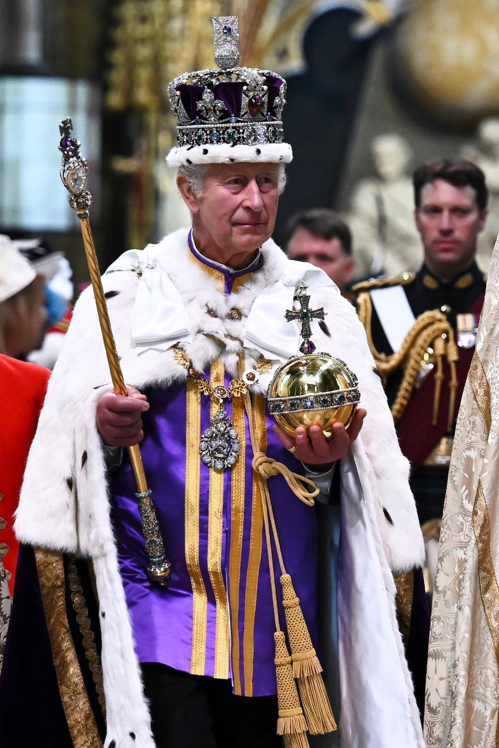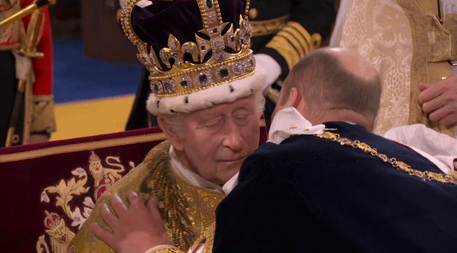 에드워드 참회왕의 관을 벗고 170캐럿 흑태자의 루비가 정중앙에 장식된 Imperial State Crown을 쓰고 있는 찰스 3세 옆에는 앤 불린 이후 처음으로 정부에서 왕비가 된 카밀라 파커 보울스가 당당히 서 있습니다.