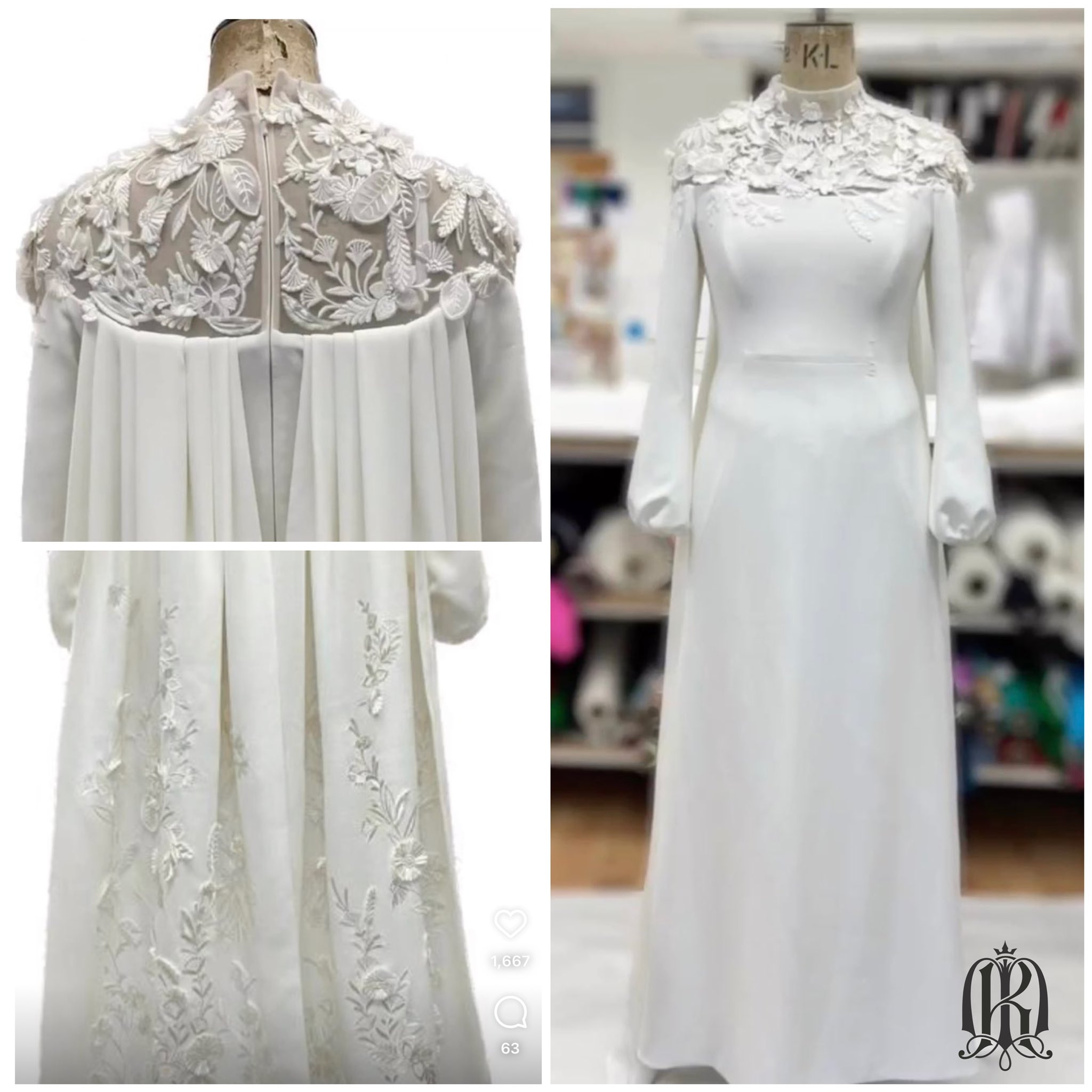 영국을 구성하는 4개의 나라를 상징하는 잉글랜드의 장미, 스코틀랜드의 엉겅퀴, 웨일스의 수선화, 북아일랜드의 샴록이 자수로 그려진 알렉산더 맥퀸 드레스는 아쉽게도 맨틀에 가려 잘 보이지 않았지만...