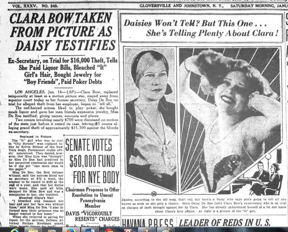 데이지 드보는 전 고용주의 사생활을 팔았고, 가십 지는 클라라 보우의 문란함, 동성애, 마약, 알콜 중독, 가족사를 과장시켜 보도했습니다. 당시 대공황이었던 미국 경제 상황에도 불구하고 자유분방한 클라라 보우의 사생활이 요란스럽게 계속 보도되자 클라라 보우를 잇걸이라 찬양했던 대중들은 돌아섭니다.