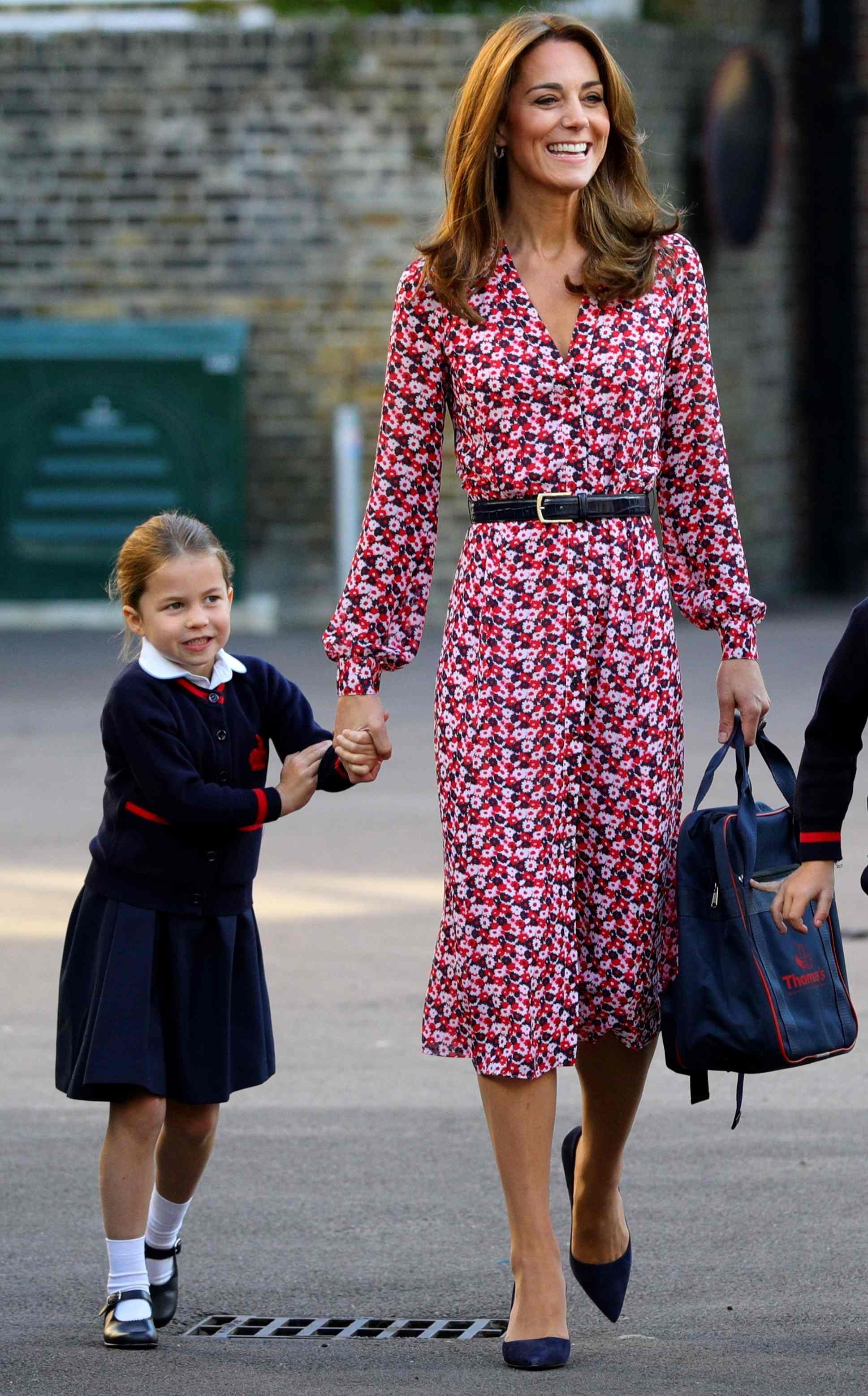 2017년, 조지 왕자 첫 등교때 케이트는 입덧으로 아빠 윌리엄 왕자랑만 동행