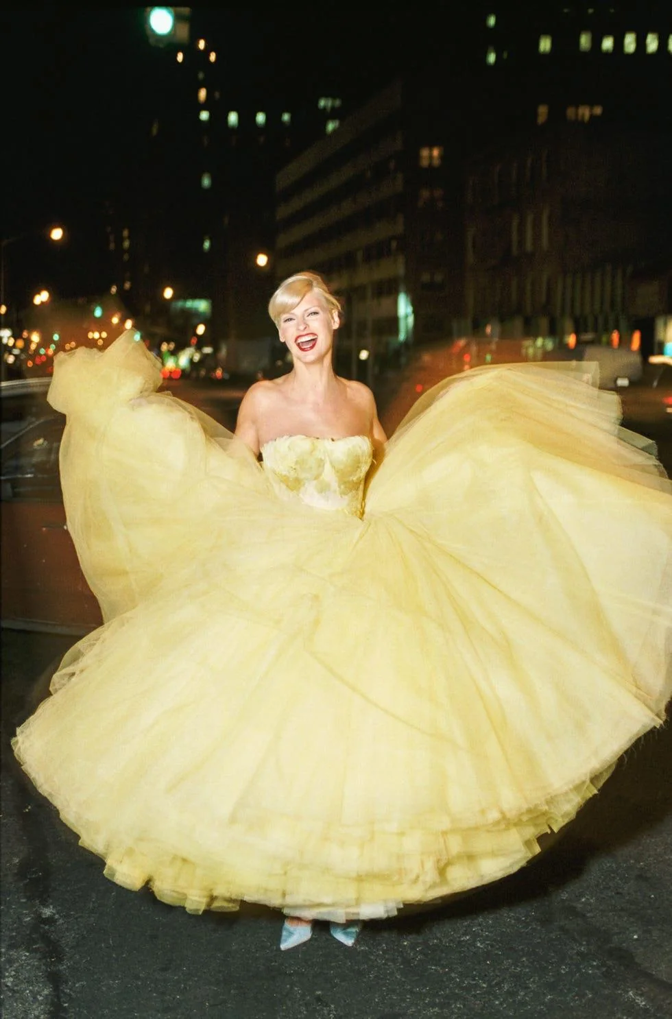 린다 에반젤리스타는 패트릭 드마쉘리에가 촬영한 1995년 1월호 하퍼스 바자 커버 속 존 갈리아노의 노란색 드레스를 입었고, 이후 존 갈리아노가 린다 에반젤리스타에게 드레스를 선물해 줬다고 해요.